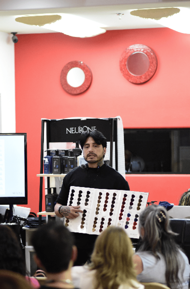 Laredo, TX – With great success, the professional workshop led by renowned stylist Jorge Casillas took place, where he shared his expertise in hair colorimetry, advanced bleaching techniques, and the latest trends for the Spring/Summer 2025 season. The event brought together beauty professionals in a space dedicated to education and innovation, becoming a unique experience for the industry. Throughout the session, attendees gained in-depth knowledge of the NEURONE COLOR line, highlighting its Nano Tribology hair technology, designed to deliver intense, long-lasting color while providing high-level protection for the hair fiber. The workshop covered formulas, application methods, and new shades such as Mocha Mousse, Sunset Coral, Ray Flower, and Aquatic Awe—colors that blend aesthetics with environmental awareness and the emotional expression of today’s consumer. Casillas offered step-by-step demonstrations of techniques including balayage, flamboyage, babylights, and root shadow, also addressing the proper use of lighteners such as Plattina White and developers like Neuroxide, with tailored recommendations for different hair types. He also introduced the use of toners, intensifiers, and specialized products such as Pro Filus, Revenant Color, and the restorative treatment Dyfensor Serum, all designed to deliver professional results while minimizing damage. The event clearly reflected the stylist’s commitment to continuous education and the use of cutting-edge products that prioritize hair health. FUSIONE, the official distributor in the U.S., played a key role in organizing this workshop—investing in high-quality training for Latino stylists in the region. Through events like this, Laredo strengthens its position as a hub for education and professional growth in the beauty industry.